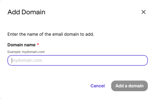 - Click Add Domain, in the upper right and enter your website's domain. For example: mydomain.ca