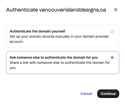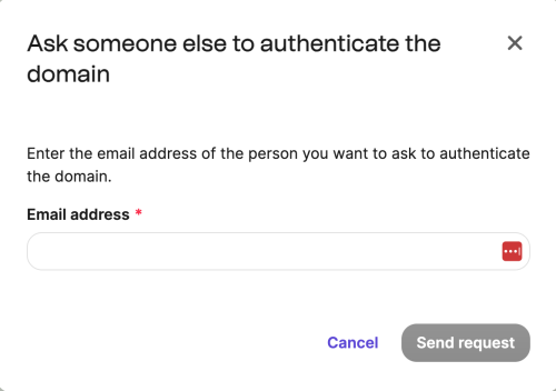 - You'll be given an opportunity to ask someone else to authenticate the domain for you. Choose that option.