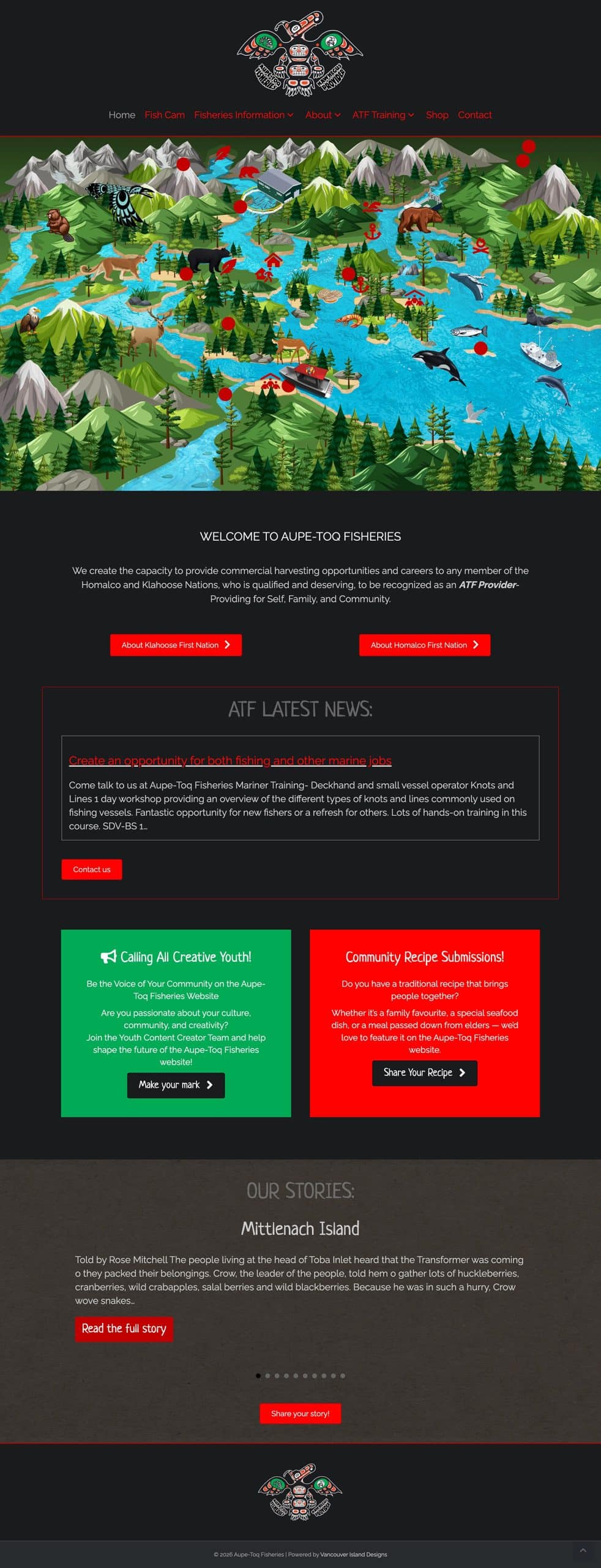 A bold, visually engaging website featuring a custom illustrated map that highlights fisheries, wildlife, and community elements in an interactive and meaningful way. Designed to share opportunities, stories, and cultural connections, the site combines strong visuals with clear calls to action to engage and inform visitors.